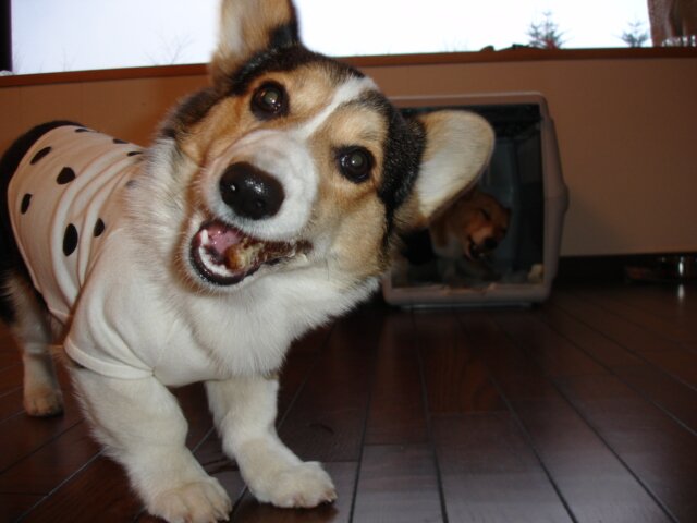お部屋のワンコトイレは、小型犬用。コーギーには、ちょっと小さいかな?