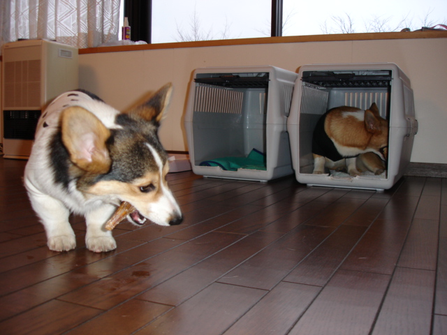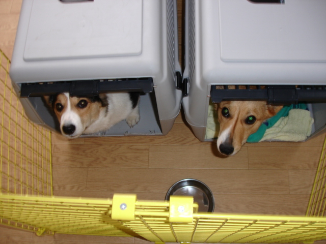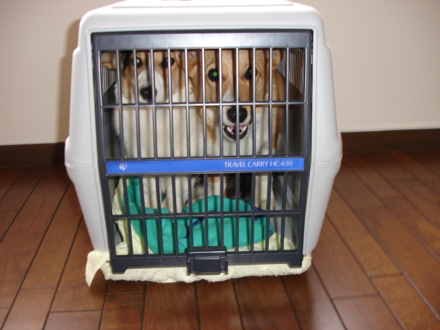 少しでも旅先で快適に過ごせるように、クレートやトイレを持参しました。