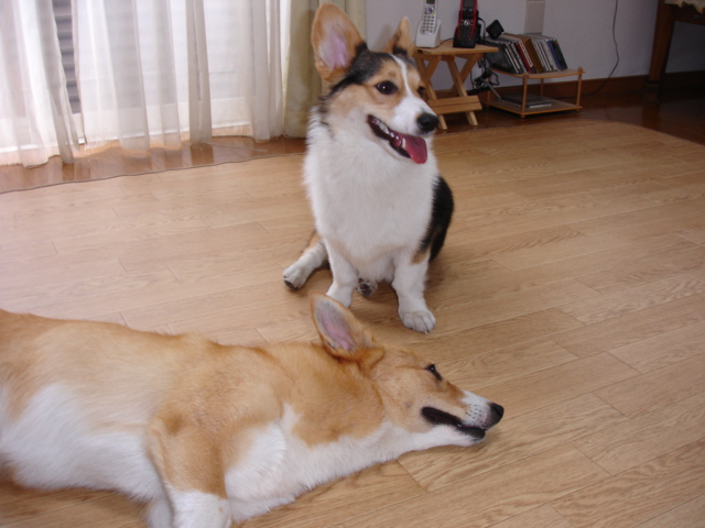 カイヌシ~ズ、帰宅後に撃沈。夕方のお散歩もサボってしまいました。