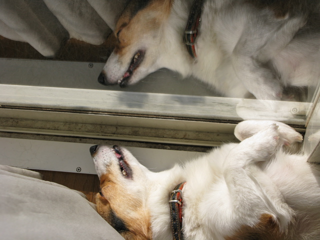 ポッキーは、ほぼ100%ヘソ天で寝ころがります。