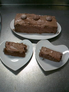 家にある食材で代用に代用を重ね出来上がったチョコレートケーキです。