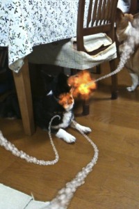 ワンコ達にミサイルをブッ放して遊んでおります。