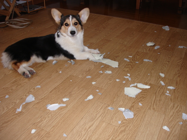 ポッキーは、ワインが入っていた紙の箱をボロボロにしてくれました。