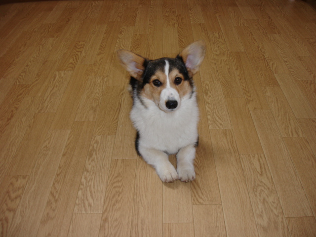 お腹を床まで付けたら、「ヨシ」でマテの解除。