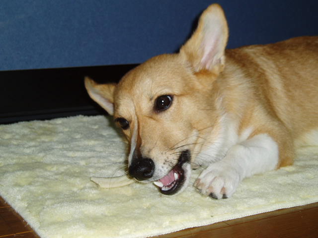 あげるとすぐに食べ尽くしてしまうので、大型犬用のガムを食べさせています。