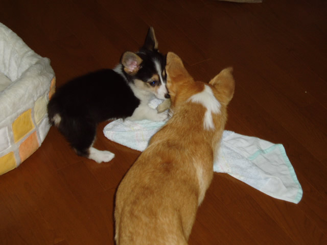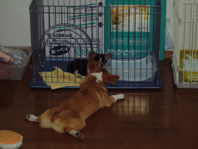 ポッキーも負けられじと、サークルから出ると落ちているマロンのガムを取ってしまう