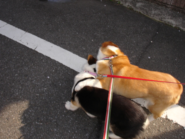 朝:夫氏を送りながら2頭で散歩(私の気が向いた時のみ)