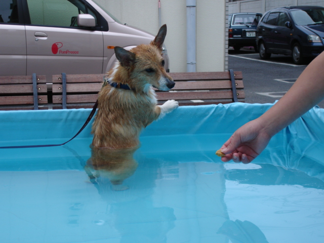 プールはコギサイズだと、微妙に足が届かない深さ。