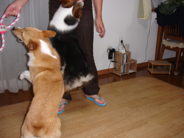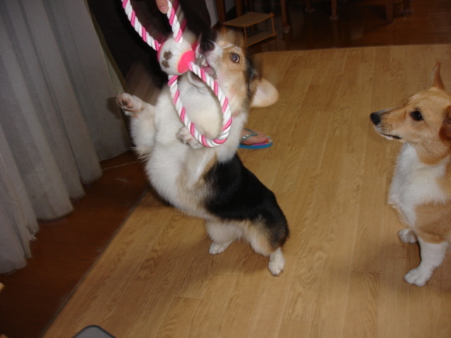 ですから、カイヌシが振り回すおもちゃを、引っ張る遊びが中心になります。