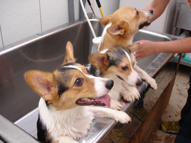 3匹ともおとなしく洗われている写真、とっても可愛いです。