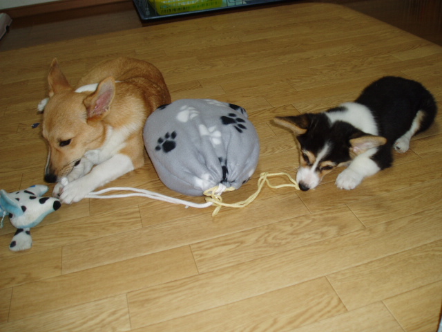 ある程度想像していたものの、やっぱり紐を噛みだしました。あらかじめ紐を長めにしておいたから、平気だもんね。しかし、少しは暖を取っていただきたいところなのですが・・・。