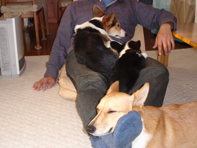 いいなぁ~ 私もコーギーたちに埋もれた~い。 あこがれの多頭飼い… そうそう、コギスタ見ましたよ。 ライオンポッキー最高です!! あの遠い目が…