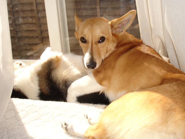 コッコはポッキーと一緒に寝たり、一人でクレートで丸まっていたり。