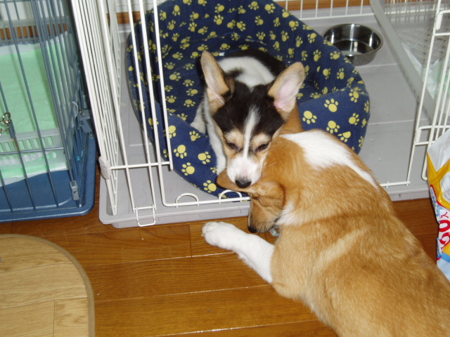 体格差はすごいあります。でも、ポッキーの方が始終ガウガウやっている感じ。