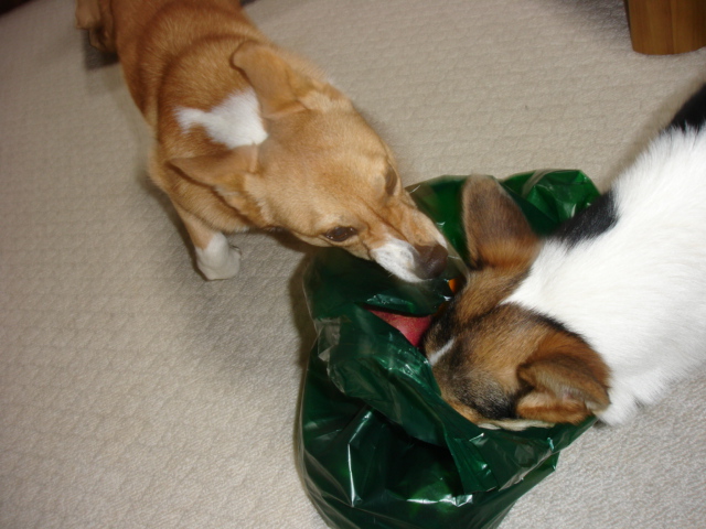 りんごの袋に食らいつくマロン姉さんの顔が・・・(・ω・A;)アセアセ