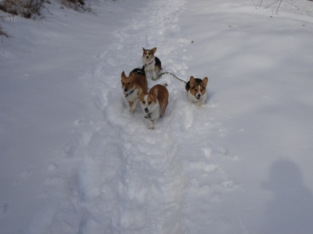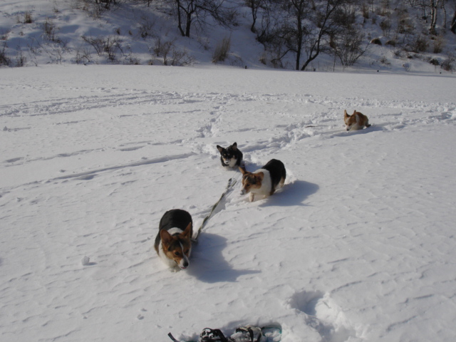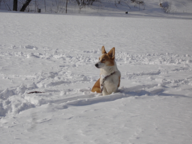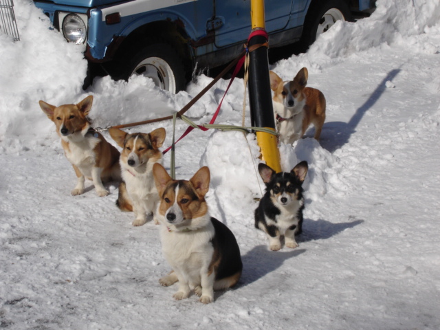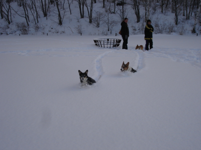 ポッキーは路面が濡れているのは嫌いでも、雪なら問題無いようです。