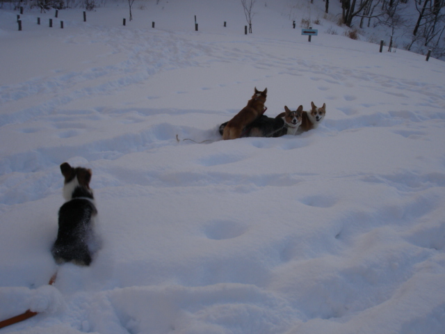ワンコたちのおなかは雪玉だらけになったでしょうか。
