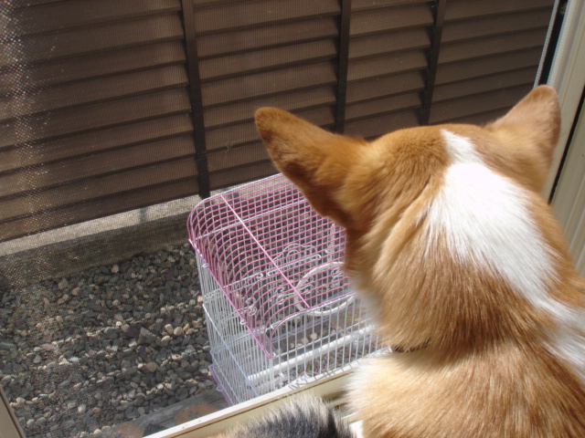 気が付けば鳥かごの前に陣取り、吠えたり睨んだりしております。