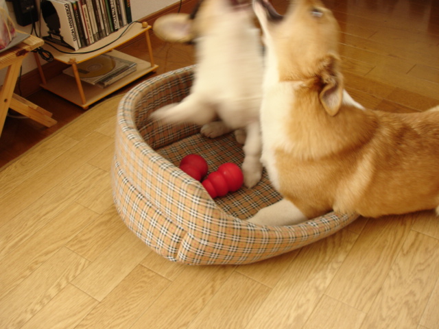 相変わらず微笑ましいマロンちゃんとポッキーちゃんの闘い・・・