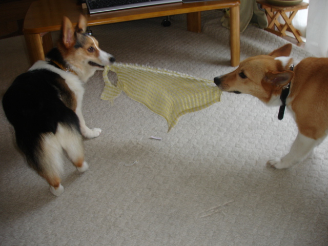 珍しくマロポで引っ張りっこをして遊んでいたようです。
