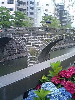 はじめまして。いつも楽しく拝見しています。 紫陽花に眼鏡橋とくれば、それはもう長崎でしょう。 出張おつかれさまです。