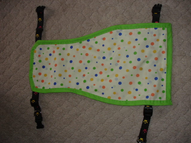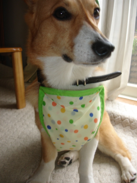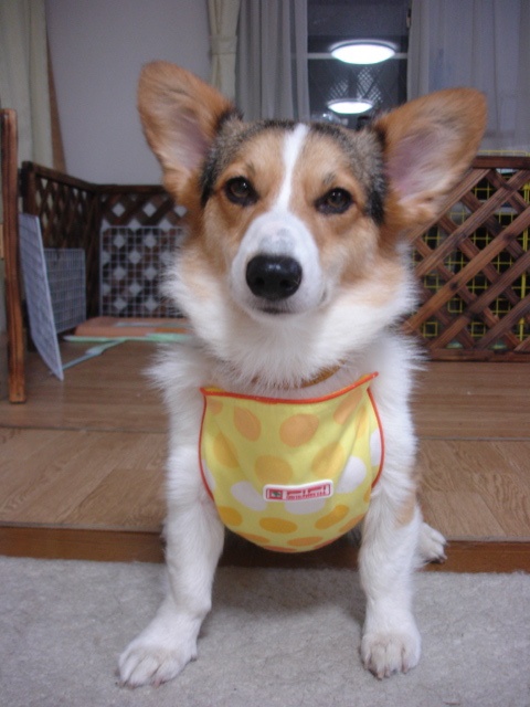 そこで、エプロンを装着してお散歩に臨むのでした。