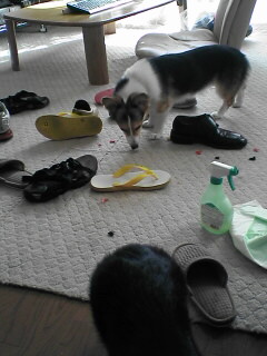 latte様 私はこの写真を会社でみたのですが、 おもわず仰け反って、イナバウワーでした。 黄色いビーサン、黒いトレッキングサンダル、 革靴、ちょっとだけ写ってる銀入りのNike、 全部私のなんですよ〜 (T_T) はるポンフェ様 これはブラック団による連携作業だったようです。 ただ、リビング中央に靴を集めたのは 恐らくポッキーだと思うんですよ。 良くスリッパをここで噛んでますから。。。(^^; PON様 ピンクの破片は、ゆうちんくんのビーサンです。 結局、ビーサンは鼻緒を食いちぎられて全滅でした。 マロンはサークルから出なかったんですよ。 さすが長女。奔放な妹達とは違います。 コギとら様 この惨事には続きがあって、 2階に突撃されてたんですね。 和室にジョ〜、洗濯物にプリッっと 非道の限りを尽くしてました。 恐るべしブラック団。。。(T_T)