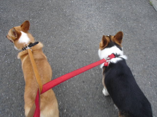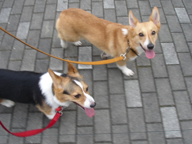 latteさま 正解で~す!茶虎ちゃんが遊びに来てくれました~。 上から見ると、ポッキーとの違いが判りますね。 朝からどたばたウルサイので、茶マロでお散歩に出たのでした。 この2頭は、まだ順位に決着がついてない感じなので 見ていて面白いんですよ~。