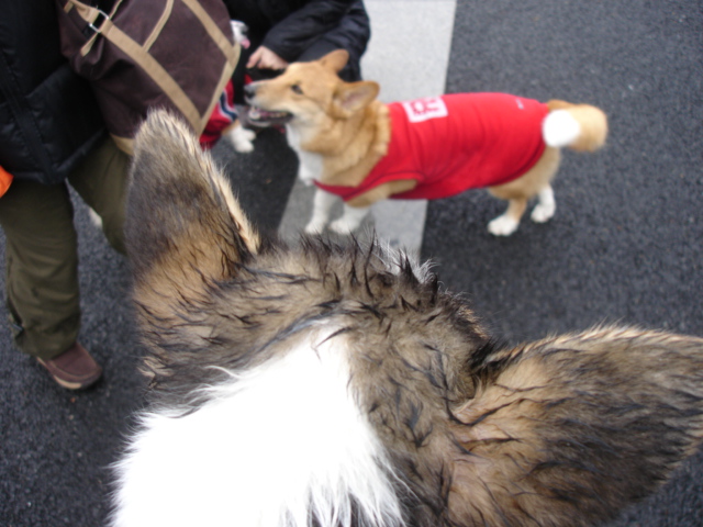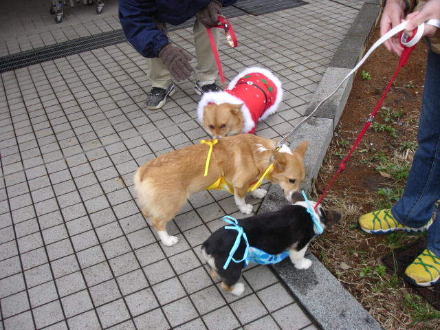 マロンもポッキーも、他のコギちゃんに怯む事無く、お散歩を始めました。