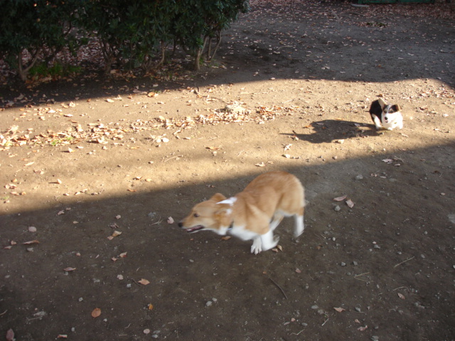 最初は地面をクンクンしているばかりだったのですが、私が走り出したら