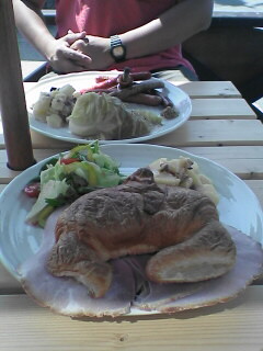 こんなナイフ使って食べるようなでっかいハムサンドは初体験。