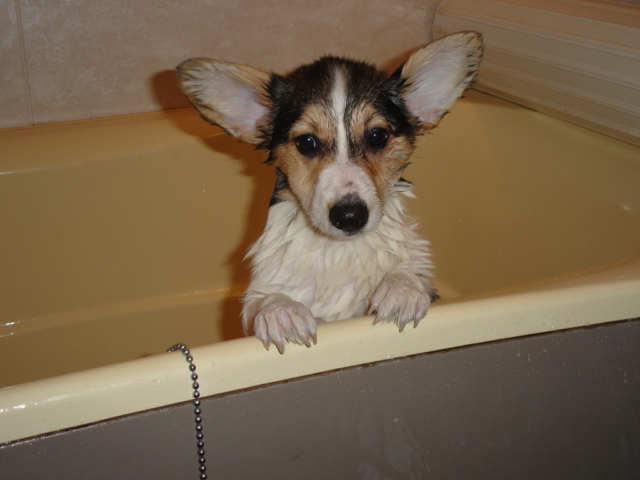ポッキーちゃん、濡れねずみだー!可愛い。