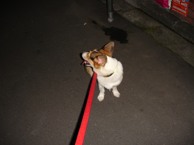 少々肌寒くなってきた夜の散歩でも、この方はマイペース。