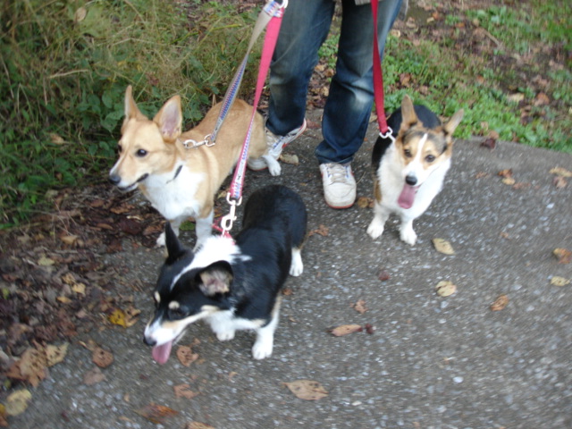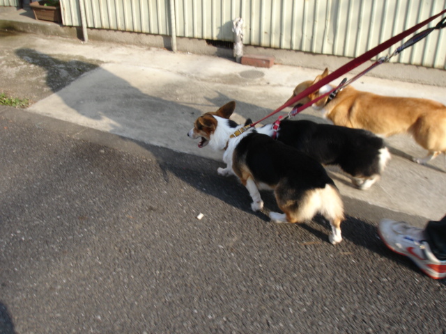 普段3頭で散歩に連れて行っているせいか、ポッキーはマロコと雁首を並べていないと不満な様子。
