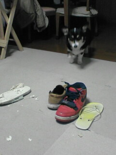 はるポンフェさま しかし、ポッキーは「コード噛み噛み」事件があったので、 神社行きの検討中であります。 レンジャー! チー坊さま 夫の靴、私の靴&室内履きのビーサン、トイレのスリッパ・・・。 至る所に置いてあった靴を、一同に集めてくれたようですvv maybeさま 本で読んだのですが、ワンコって一人で寂しいと、 カイヌシの匂いが付いたものを集めたりすることがあるらしいんです。 そう考えると、コッコのこれも、可愛いものですよね。 PONさま この後は、ずっとチョピチョピ「しー」しまくりでした。 白菜の食べすぎでしょうね。 カーペットの掃除で発狂しそうでしたよvv