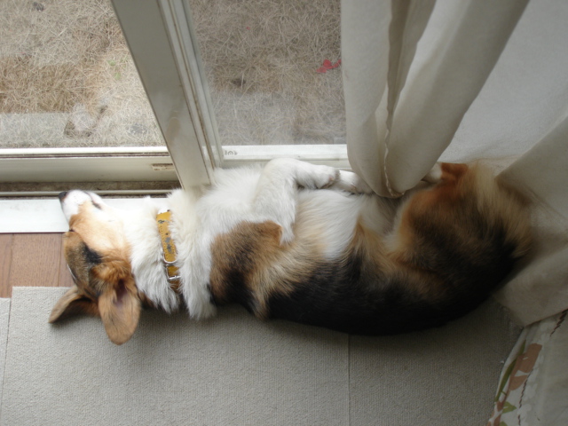 ところが今日、ファンヒーターまえで寝ころんでいるコッコの耳を