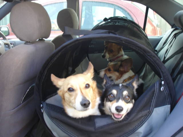 可動域が広がったおかげか、車中でも大人しくしてくれています。