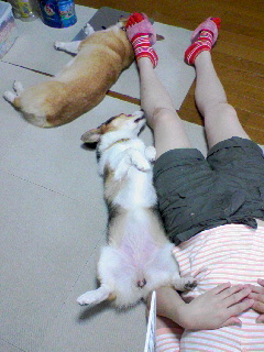 ふふふ、ゆうちんさんと一緒に幸せそうに寝るわんこたち。