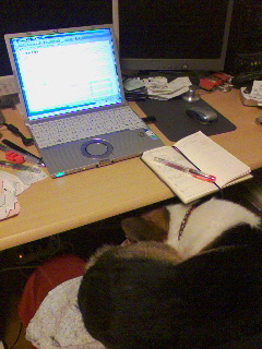 PONさま ポッキーは困ったことに、膝に座れないと 不満で吠えまくるんですよ。 居間でうるさかったので、夫氏の下へデリバリーしたのでしたw
